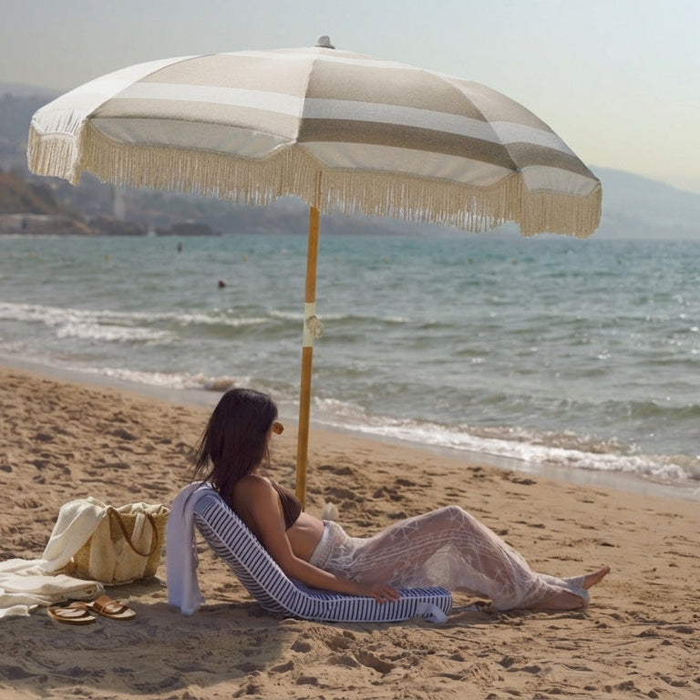 Built for comfort without compromise, the Foldable Chair offers a wider fit and six adjustable reclining positions to suit every moment, from upright lounging to full relaxation. When folded, it can be comfortably carried over the shoulder, making it ideal for beach days and outdoor escapes. A concealed pocket behind the headrest provides a shaded space to store small essentials out of direct sunlight.