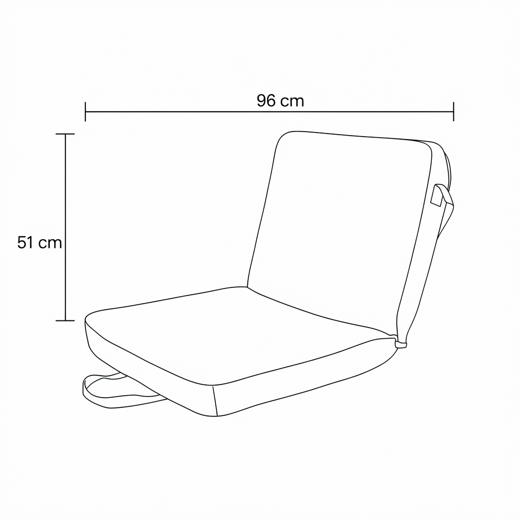 Measuring L 96 W 51 H 8 cm, this beach recliner offers extended support and adjustable comfort for laidback lounging.