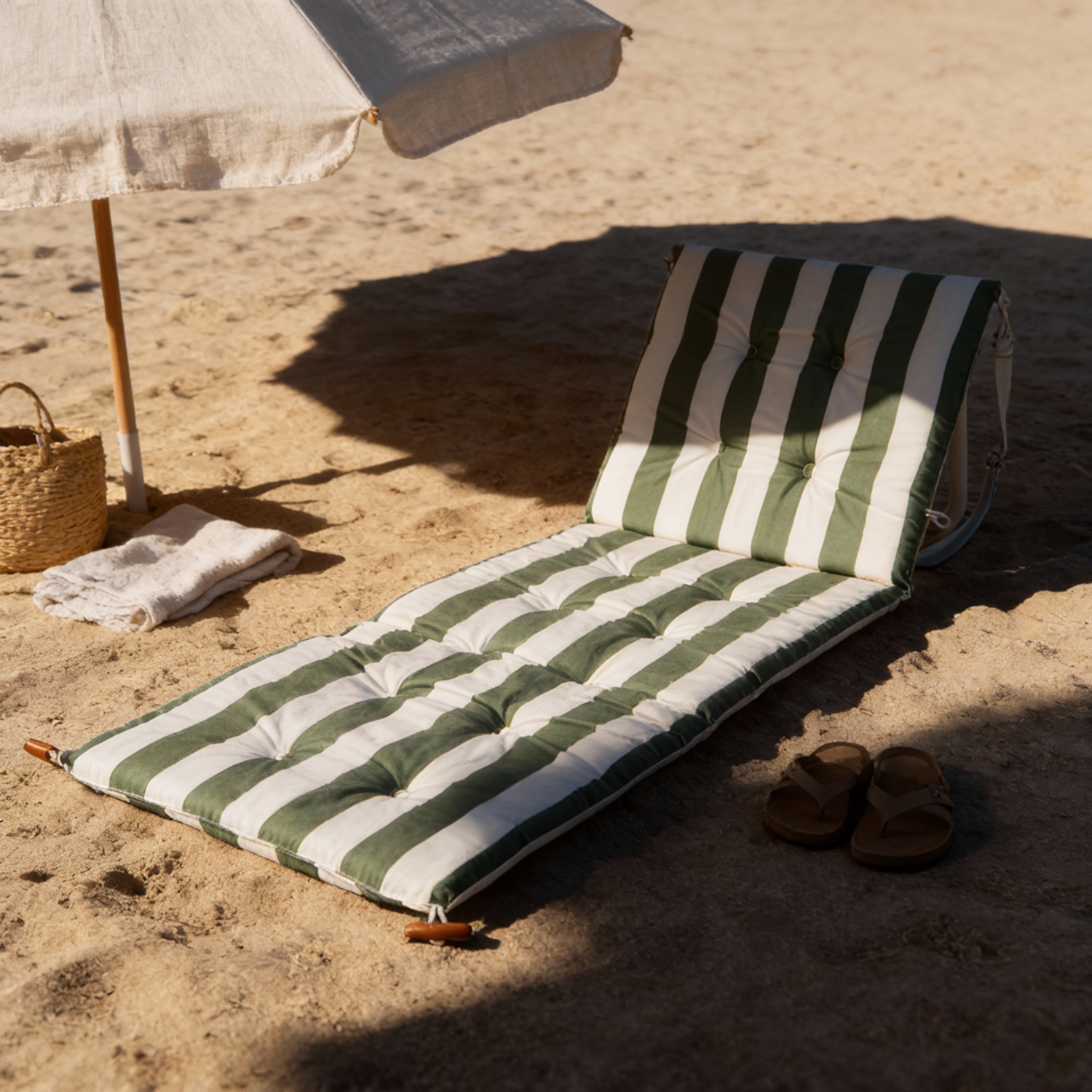 Premium outdoor fabrics with UV resistance and quick-drying, durable frame materials optimized for sand and sun.
