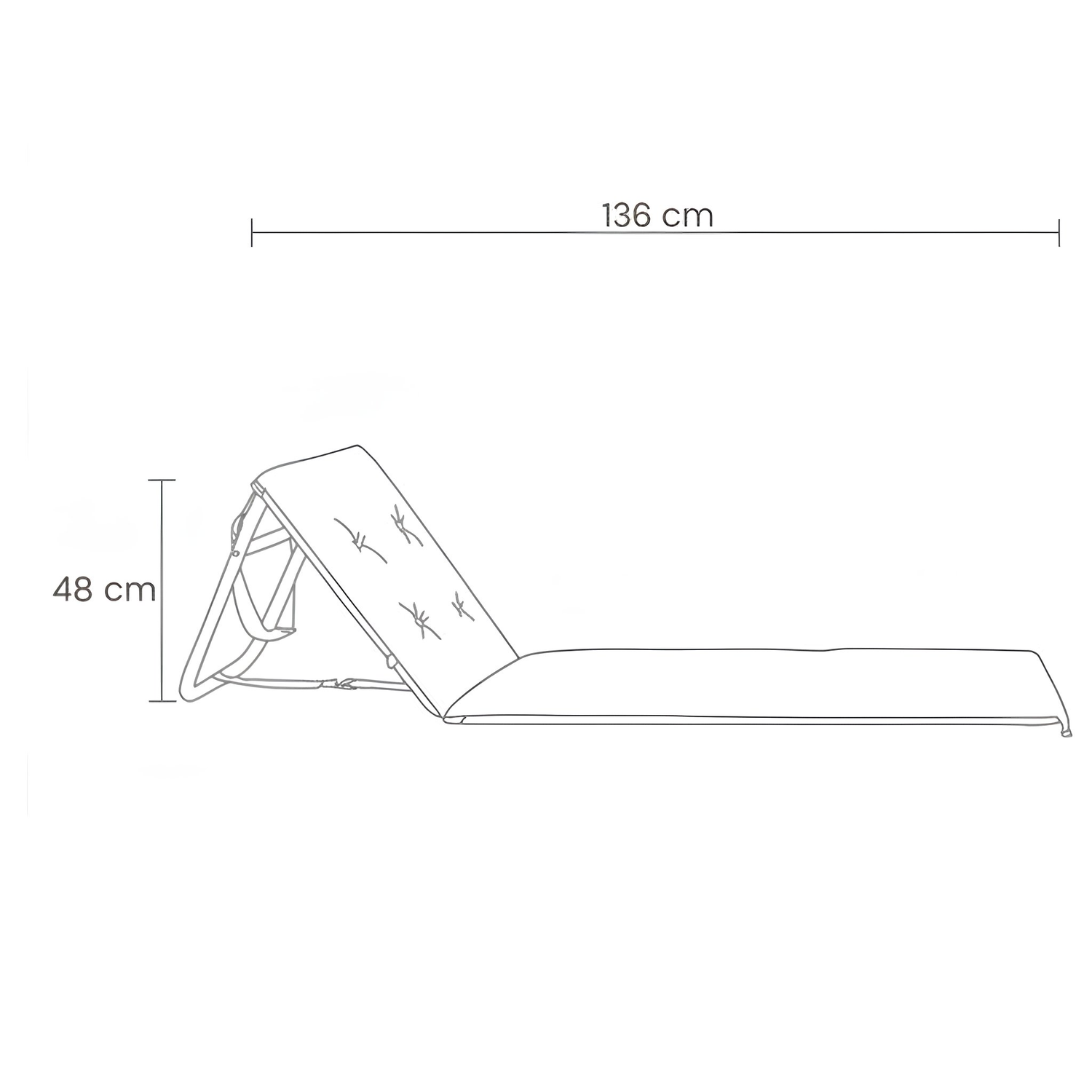 Measuring L 136 W 48 H 40 cm, this beach recliner offers extended support and adjustable comfort for laidback lounging.